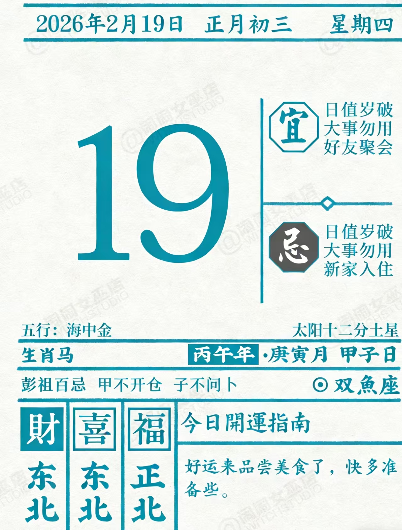 是情感萌发的好日子,单身者参与聚会易留下活泼印象,有伴侣者可促进感情升华,需避免因兴奋做出一厢情愿的举动。